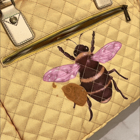 原创艺术品采用层叠蜂窝结构,正面和背面均带有 BubletCo Bzz Bee 图案